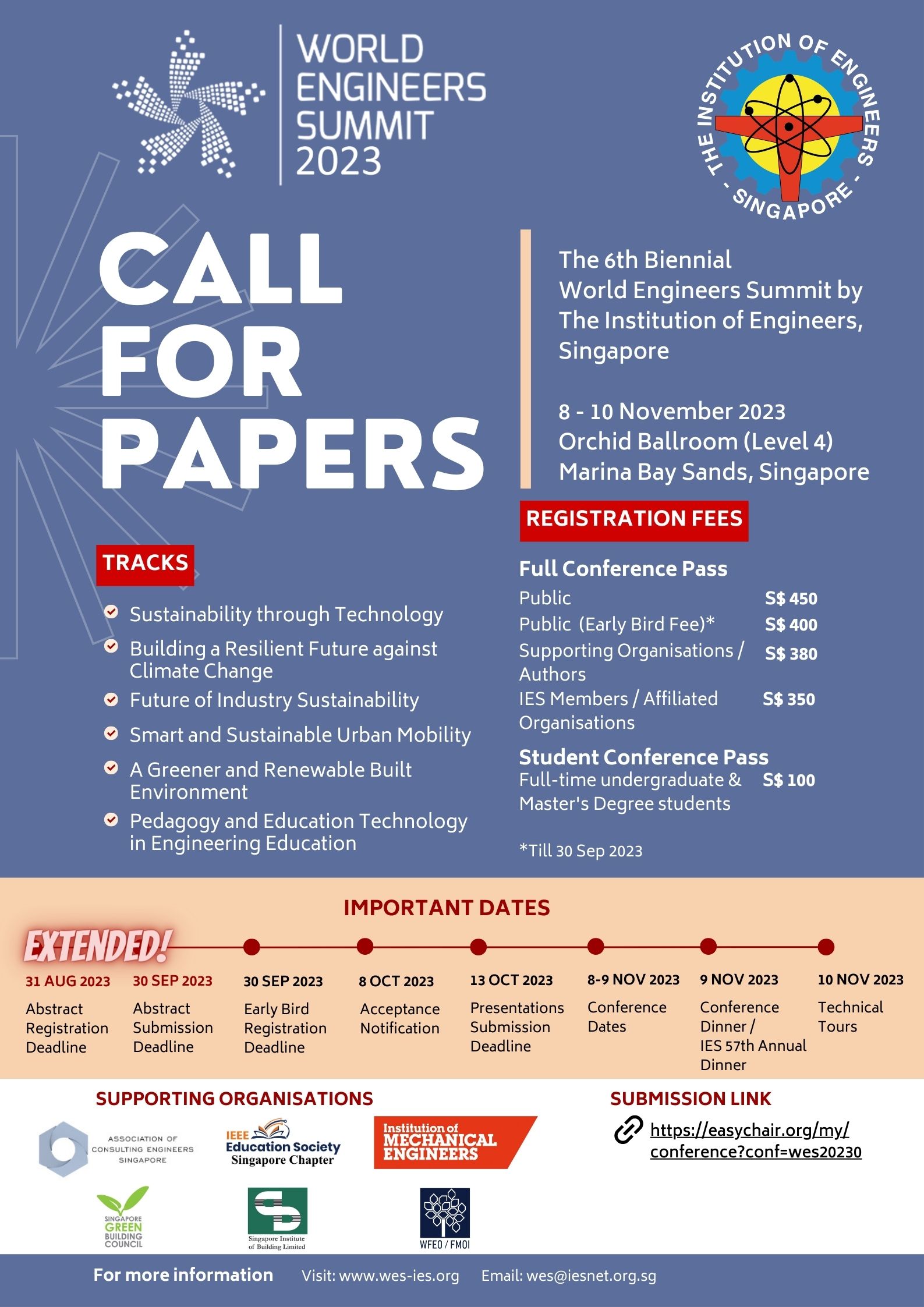 The abstracts selected by the Abstract Review Committee, comprising various international field experts, will be invited to submit full papers for presentation at the Summit. Final acceptance will be made upon registration of at least one author for each paper at special individual rate of S$380 (valid for full conference pass), subjected to prevailing GST.